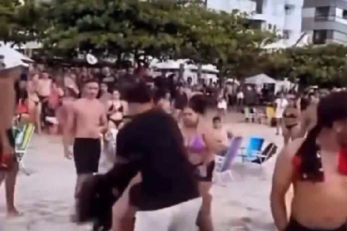Pessoas que estavam próximas tentaram intervir para separar os envolvidos, mas a confusão se espalhou, mobilizando dezenas de banhistas.