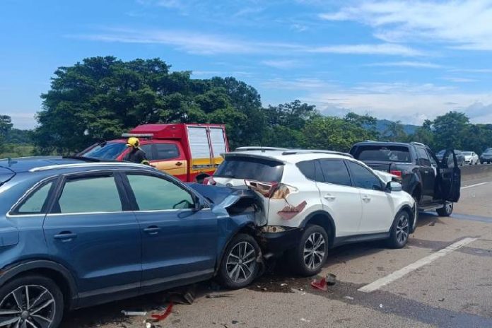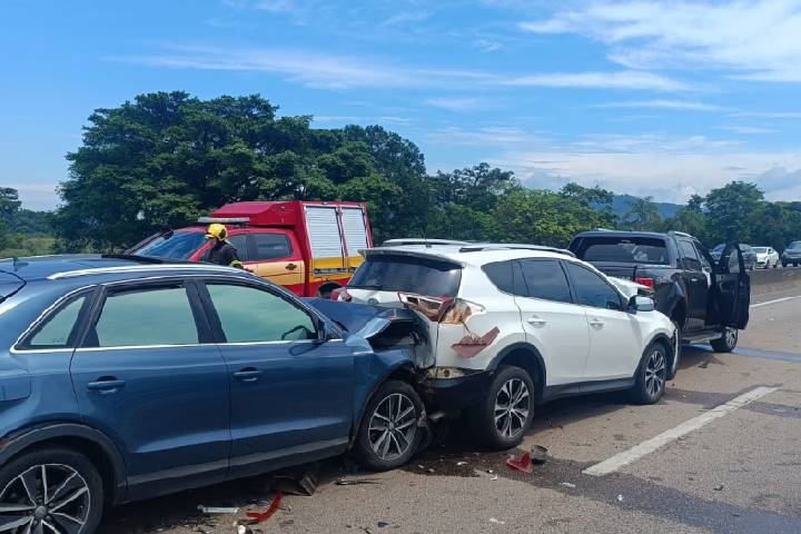 Um acidente de trânsito envolvendo quatro veículos foi registrado na BR-101 e mobilizou equipes de emergência na rodovia.
