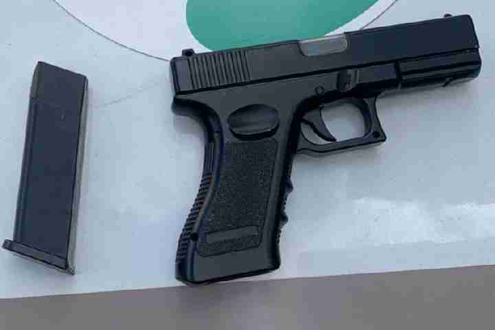 I. R. confirmou a posse do simulacro, admitindo que estava exibindo a arma para seus amigos. Ele disse que jogou o objeto em um mato próximo ao avistar a viatura policial. A guarnição localizou no referido mato uma réplica de arma de fogo semelhante a uma pistola Glock.