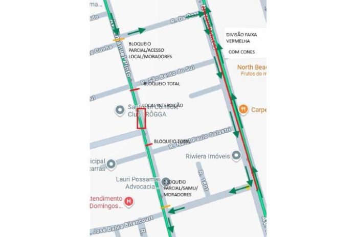 Os veículos que trafegam sentido Barra Velha seguem normalmente na Avenida Nereu Ramos. A Secretaria de Segurança Pública prestará apoio no desvio e pede atenção redobrada aos motoristas.