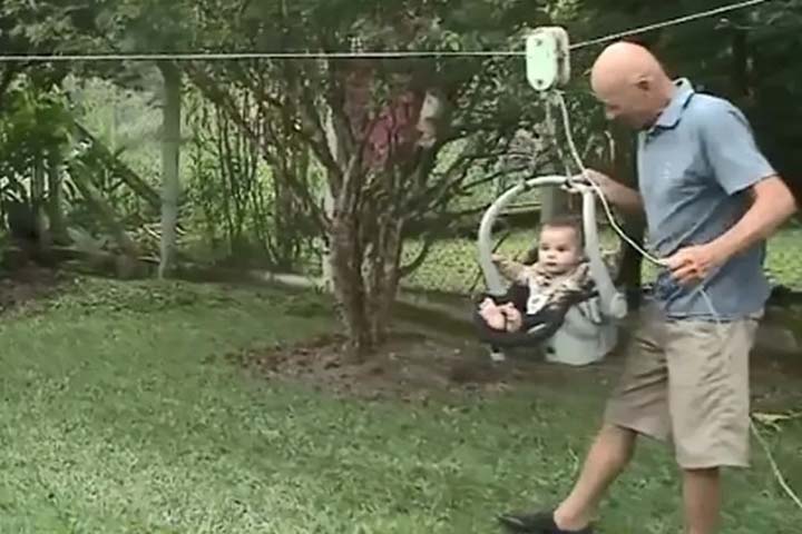 A publicação que mostra o bebê atravessando de um lado a outro do quintal no equipamento atingiu 4 milhões de visualizações em duas semanas, e segue contando.
