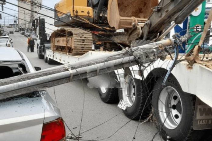 Caminhão arrebenta fiação, deixa moradores sem energia e danifica veículo em Barra Velha