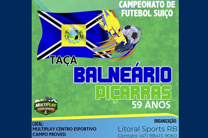Depois do pedido de muitas equipes, a Litoral Esportes RB volta a promover o Campeonato de Futebol Suíço Taça Balneário Piçarras 59 anos. O congresso técnico é nesta segunda-feira (21), às 19h.