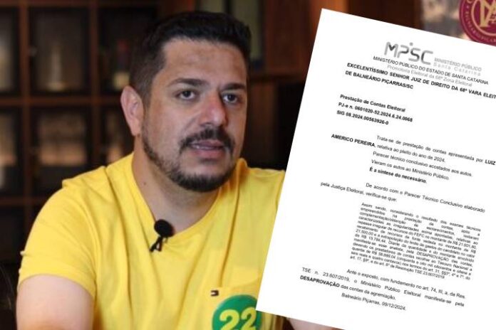 O Ministério Público (MP) seguiu o parecer técnico da Justiça Eleitoral e decidiu manter a desaprovação das contas de campanha do candidato a prefeito eleito de Penha, Luizinho Américo (PL), além de multa no valor de R$ R$ 58.886,04 ao Tesouro Nacional.
