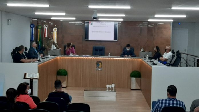 O prefeito Tiago Baltt foi convidado pelo Conseg para falar das ações do governo para melhorar a segurança pública. A principal medida adotada neste ano foi a parceria com a empresa Urbanii para instalar tótens com câmeras em pontos estratégicos do município. As imagens geradas poderão ser acessadas na sala de monitoramento dentro do prédio da prefeitura.