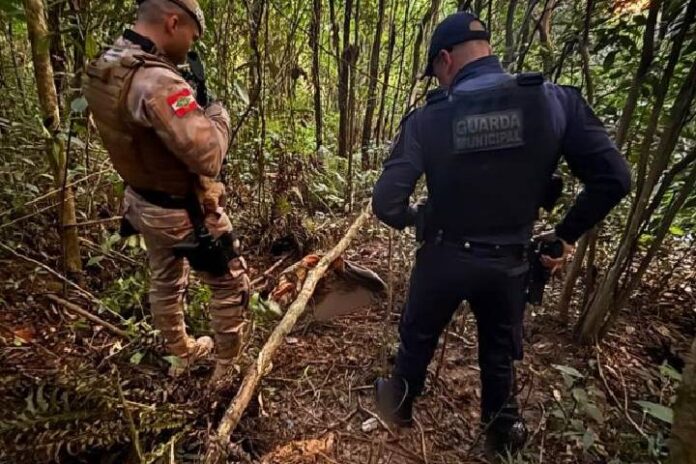 A área onde o corpo foi encontrado é de mata fechada. As buscas contaram com o auxílio de um cão de faro do Corpo de Bombeiros.