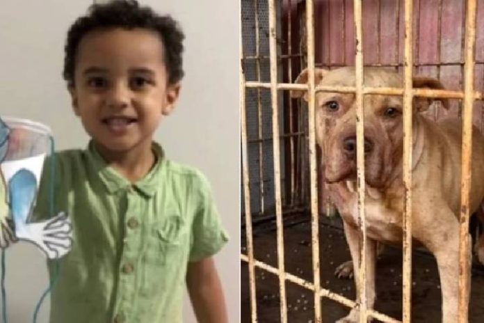 Criança estava em casa com os irmãos, enquanto a mãe trabalhava. Menino teria tentado interagir com o pit-bull, que estava comendo