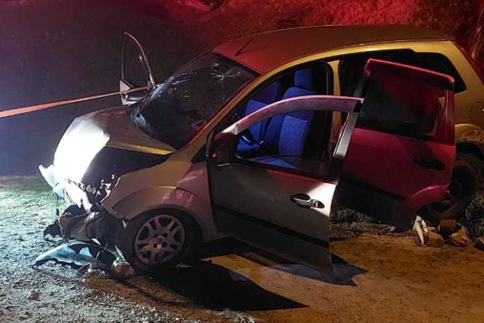Quatro pessoas, entre elas duas adolescentes de 12 e 16 anos ficaram feridas depois de colidir o carro contra um barranco na Rua Nelson Muller, em Luiz Alves, por volta das 23h deste sábado (6).