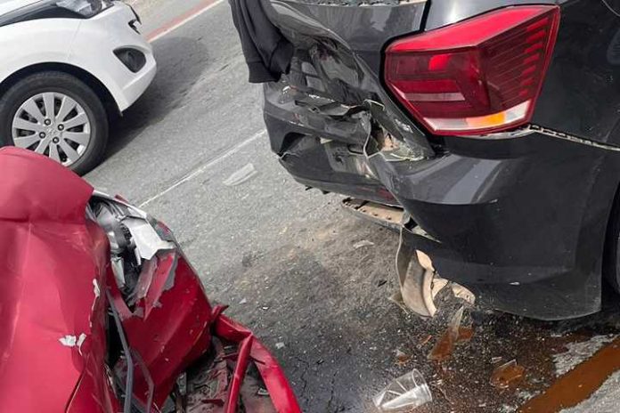 Segundo o Corpo de Bombeiros Militar, dois veículos se envolveram na colisão traseira. O motorista de um dos carros Volkswagen ficou ferido com um corte na cabeça. A passageira do carro teve um mal súbito e foi socorrida em estado de choque.