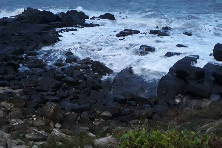 Inicialmente não foi possível ver a lancha com os tripulantes, pois ela estava entre as pedras da laje.