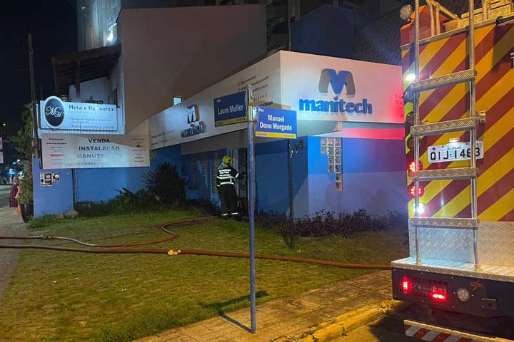 Um imóvel comercial do Bairro Fazenda, em Itajaí, foi destruído pelo fogo por volta da 1h10 da madrugada desta sexta-feira (9).