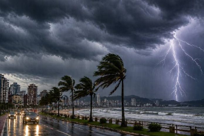 De acordo com o órgão, a chuva deve ocorrer de forma contínua ao longo do dia, com momentos de maior intensidade. As áreas mais próximas da divisa com o Paraná estão entre as que podem registrar temporais mais fortes, com descargas elétricas e rajadas de vento.