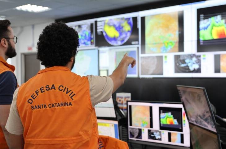 Mais cedo, a Secretaria de Proteção e Defesa Civil emitiu um comunicado sobre as chuvas previstas para Santa Catarina.