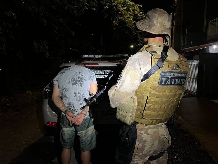 No inicio da madrugada de ontem, quarta-feira (22), uma guarnição da PM deslocou até a Rua Santo Amaro, Itacolomi, Balneário Piçarras, para verificar uma denúncia de que um sujeito estaria traficando drogas no local.