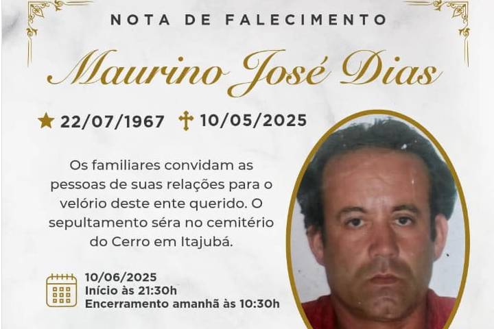 O corpo do trabalhador Maurino José Dias, de 58 anos, será velado na noite deste sábado (10), na Capela Mortuária do Cemitério Municipal de Balneário Piçarras.