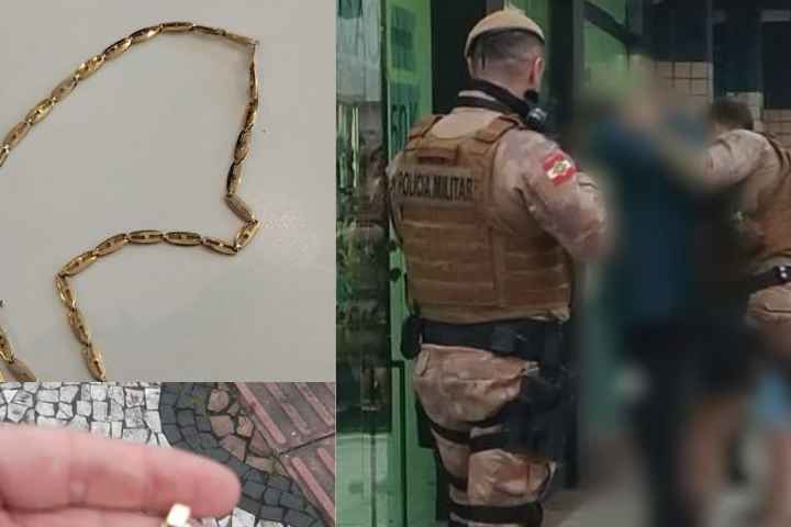 Jóia que inclui corrente e pingente está avaliada em cerca de R$ 3 mil; pinguente foi achado escondido dentro da cueca de um dos suspeitos