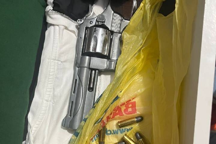 Durante as buscas dentro da residência, os policiais encontraram uma arma de fogo de origem estrangeira, escondida no armário do quarto do suspeito.