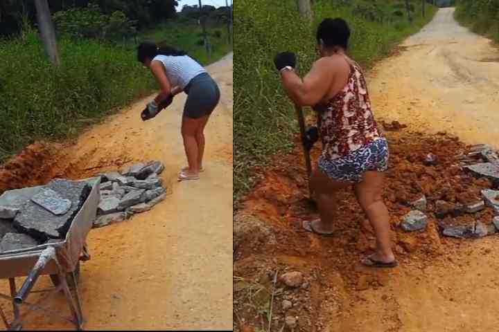Início PENHA Mãe e filha metem a mão na massa para consertar buraco na...