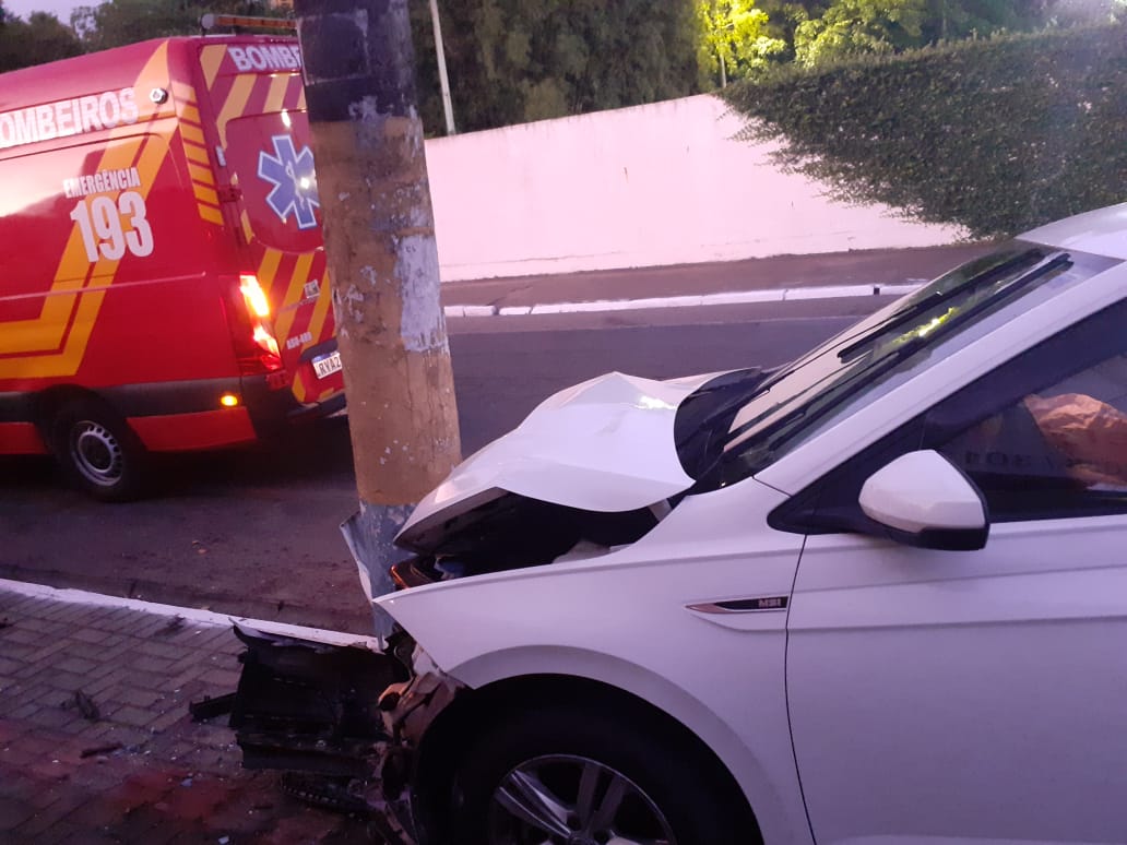 Motorista bate carro contra um poste e foge do local em Navegantes