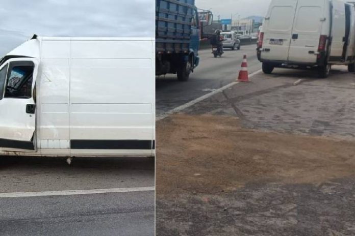 Um homem ficou gravemente ferido após um acidente entre uma van e uma carreta na rodovia BR-101, em Itajaí, nesta segunda-feira (18).