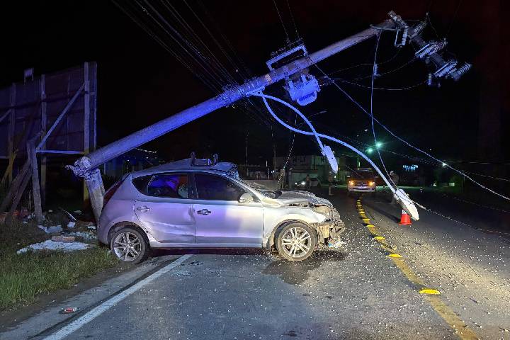 Uma motorista morreu presa às ferragens depois de bater o carro contra um poste. O acidente foi no km 13 da Rodovia Jorge Laceda, em Ilhota, na madrugada desta deste sábado (28).