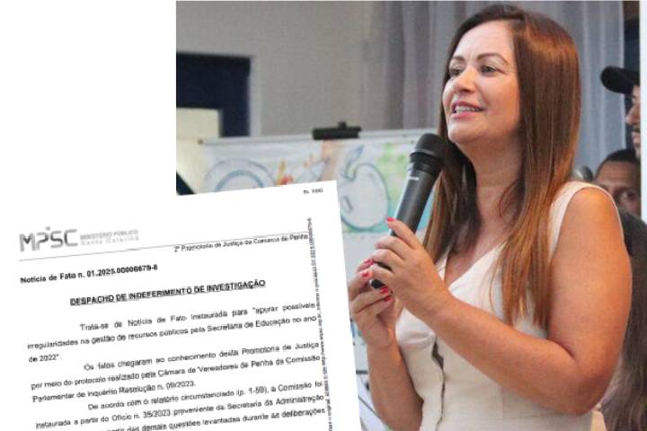 O Ministério Público de Santa Catarina (MPSC) indeferiu a instauração de investigação sobre a atuação da ex-vice-prefeita e ex-secretária de Educação de Penha, Maria Juraci Alexandrino, entre 2021 e 2022.