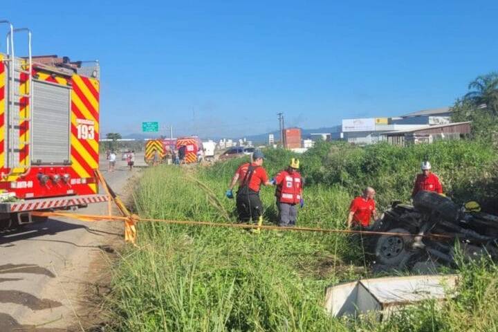 Uma mulher morreu soterrada em um capotamento na BR-470 no início da manhã deste domingo (9) em Navegantes.