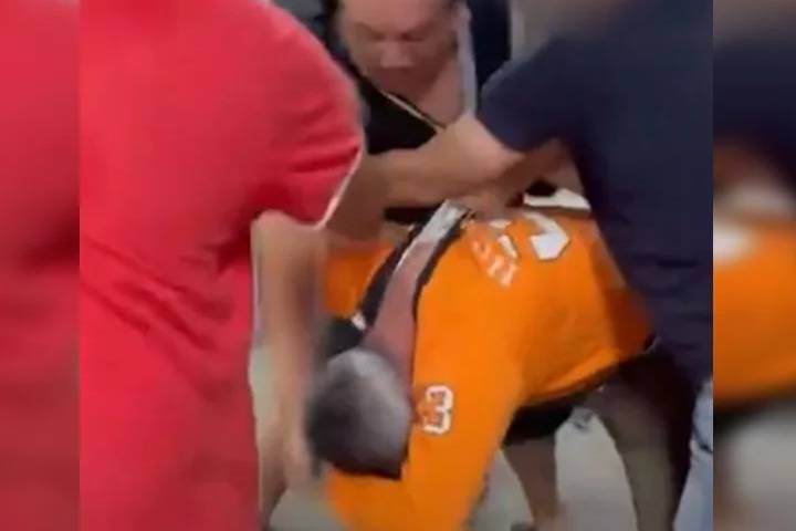 Imagens obtidas pela coluna Na Mira mostram o pai da aluna segurando o docente pela gola da blusa, enquanto desfere s0cos nele. Outros estudantes aparecem na imagem tentando conter as agr3ssões.A filha do agr3ssor dá um m4ta leão no próprio pai para interromper o espanc4mento. Ela consegue derrubar o homem no chão.