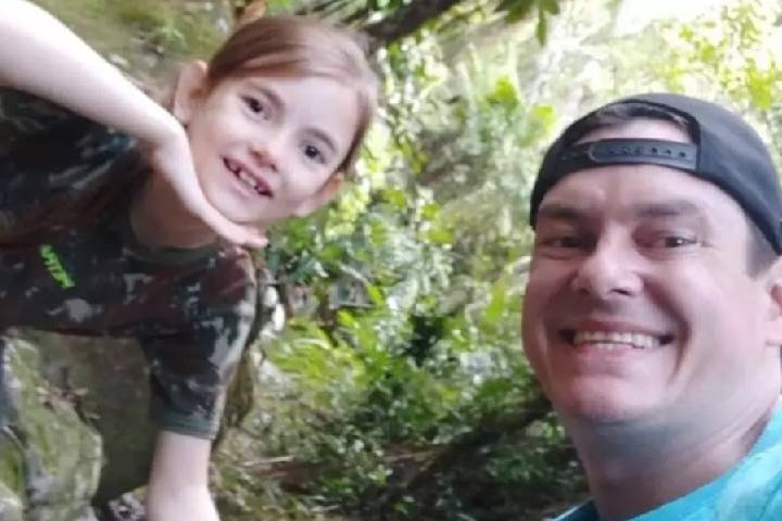 A menina Bianca de Freitas Hasse, de 8 anos, e seu pai, Anderson Rafael Hasse, desapareceram na última quarta-feira (5) no Morro do Baú, em Ilhota, no Vale do Itajaí