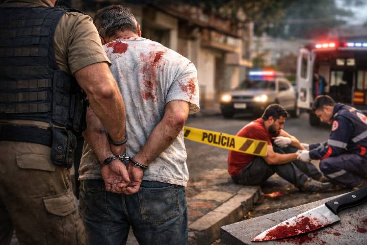 Uma cena chocante marcou a tarde de quinta-feira (27) no bairro São Vicente, em Itajaí. Um homem de 58 anos foi preso em flagrante após tentar matar o próprio filho, de 27 anos, durante uma discussão dentro de casa.