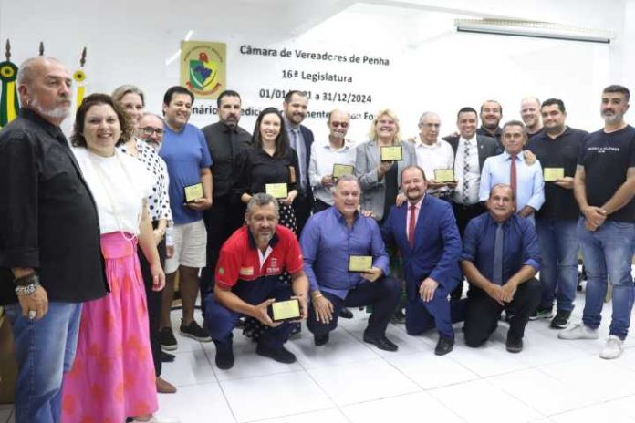 A Câmara de Vereadores de Penha prestou homenagem a 10 personalidades que contribuíram de alguma forma com a construção, o crescimento ou a própria história do município. O reconhecimento ocorreu na noite de terça-feira (2) durante uma solenidade que contou com a participação de autoridades, familiares e amigos dos homenageados.