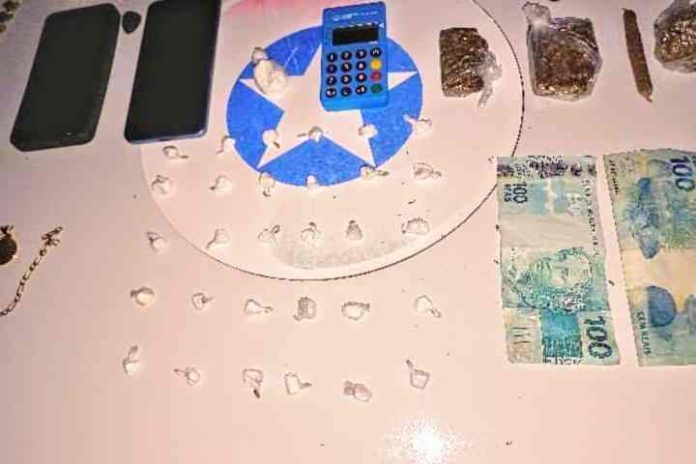 Os conduzidos, a droga, aparelhos celulares, dinheiro, máquina de cartão e demais pertences foram entregues na Delegacia de Polícia Civil.