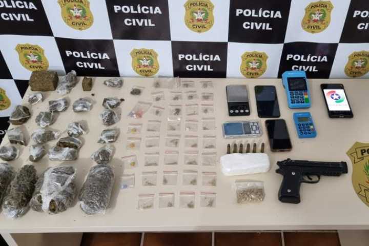A Polícia Militar de Barra Velha em trabalho conjunto com a Polícia Civil apreendeu uma grande quantidade de drogas na Rua José João de Borba, no Bairro de Itajuba nesta terça-feira (2).