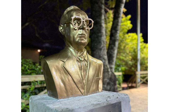 “A obra passou por vários processos de modelagem. Primeiro na argila, depois foi retirada uma forma em gesso, e por último moldada na resina. Os óculos são de bronze. O processo de criação foi bem bacana, em conversas com moradores para entender a história desse grande agente político”, explica Molley.