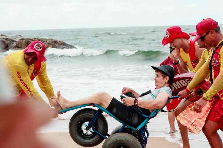 O objetivo é proporcionar às pessoas com mobilidade reduzida ou pessoas com deficiência o banho de mar de forma adaptada, com auxílio da cadeira anfíbia