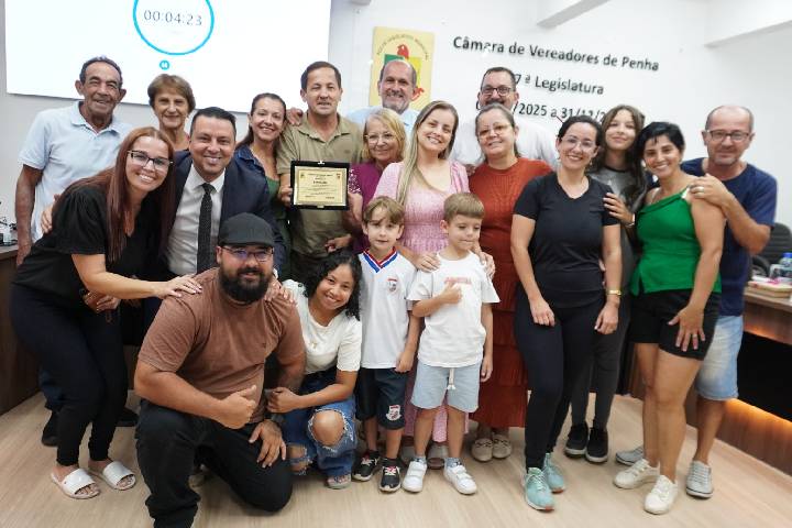 Roberto Leite é homenageado na Câmara de Penha pelos anos de dedicação à cultura local