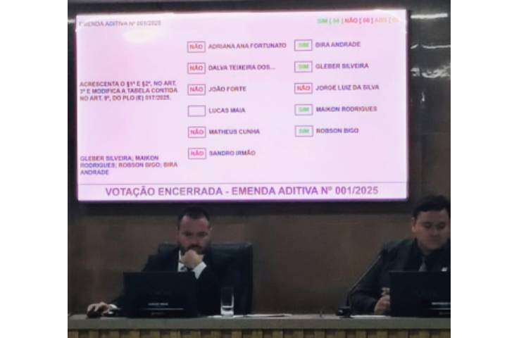Adriana e João Forte (PSDB), Dalva (PSD), Matheus Cunha, Sandro Irmão e Jorge Luiz (MDB) – votaram contra a emenda aditiva ao projeto 017/25, que institui incentivo financeiro as equipes de atenção primária da saúde