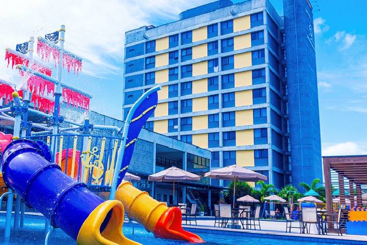 Com 8.185m² de área, o hotel conta com piscina adulta e infantil, três hidromassagens, playground infantil, espaço kids, salão de jogos, sauna seca e a vapor, sala de massagem e academia.