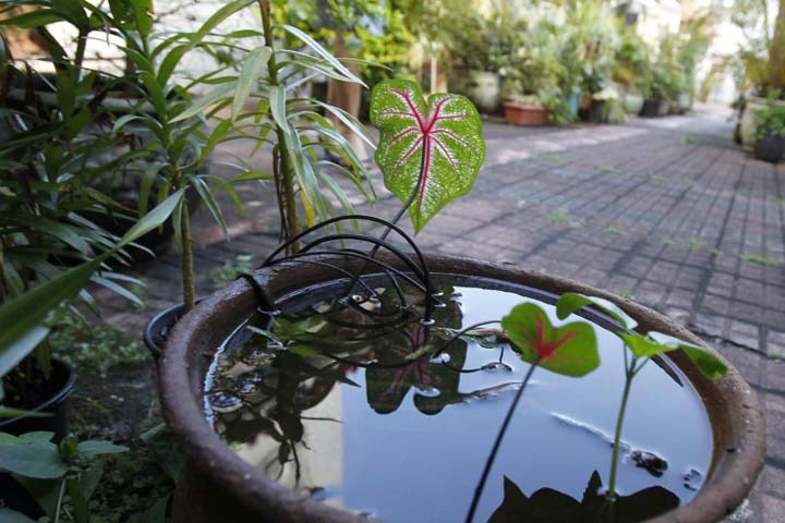 Evite deixar qualquer reservatório de água parada sem proteção em casa. O mosquito pode usar como criadouros desde espaços como caixas d’água e piscinas abertas até pequenos objetos, como tampas de garrafa e vasos de planta.