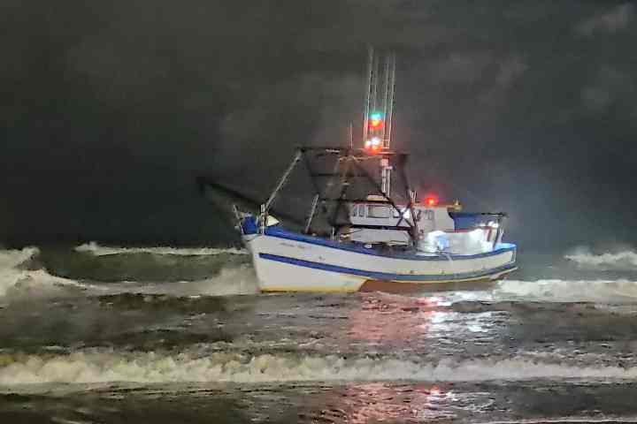 A embarcação identificada como “Antônio filho 6” já se encontrava encalhada na praia, a uma distância de aproximadamente 10 metros da faixa de areia.