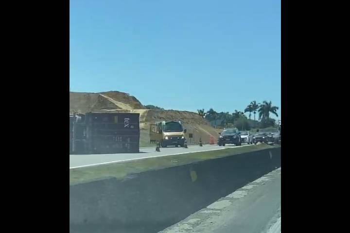 URGENTE Vídeo mostra caminhão tombado na BR-101 em Penha