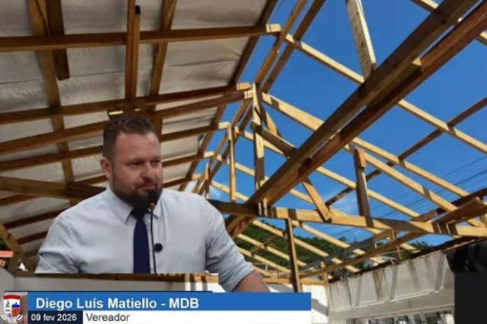 Durante o uso da tribuna livre na segunda reunião ordinária da Câmara Municipal de Penha, o vereador Diego Matiello (MDB) fez duras críticas à situação de uma obra em uma escola do município e ao funcionamento do Departamento de Aprovação de Projetos da Secretaria de Planejamento.