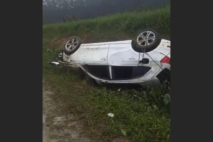 O acidente ocorreu por volta das 5h40, quando um veículo capotou e caiu na vala localizada na lateral da via, atingindo diretamente a tubulação.