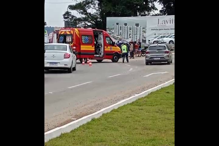 Um casal que estava em uma moto ficou ferido ao bater contra um Ford Fiesta. O acidente foi neste sábado (7), na Rodovia Transbeto, em frente ao Kartódromo do Beto Carrero.