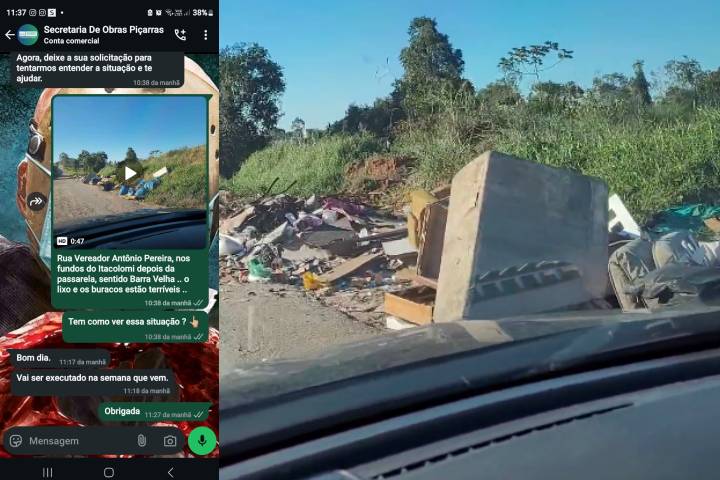 Segundo uma moradora próxima, imagens foram repassadas para o setor de fiscalização e postura da prefeitura, mas nenhuma providência foi tomada, segundo ela. “Sempre dão a mesma desculpa, que vão limpar na semana que vem (veja print abaixo)”, ironiza.