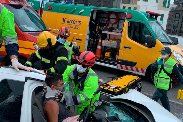 Utilizando as técnicas de resgate, os bombeiros conseguiram remover o motorista com todo cuidado evitando riscos de lesões, principalmente, na área da coluna. Depois, ele foi levado para atendimento hospitalar pelos socorristas da Auto Pista Litoral.